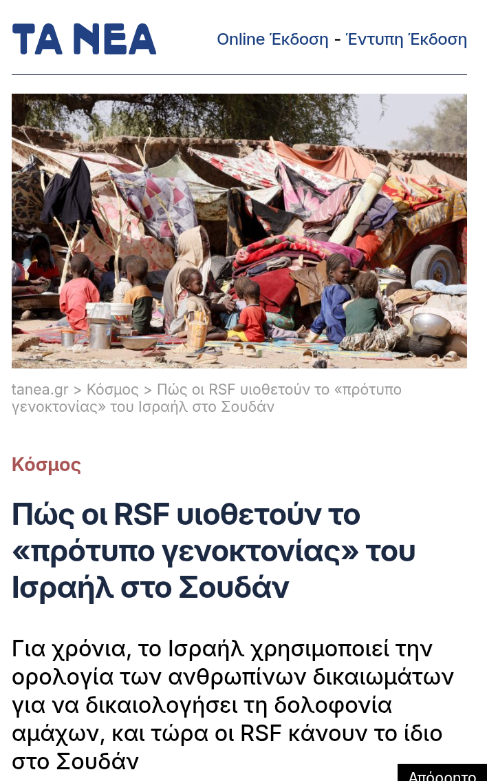 "tanea.gr > World > How #RSF adopts the “standard #genocide" by #Israel in #Sudan